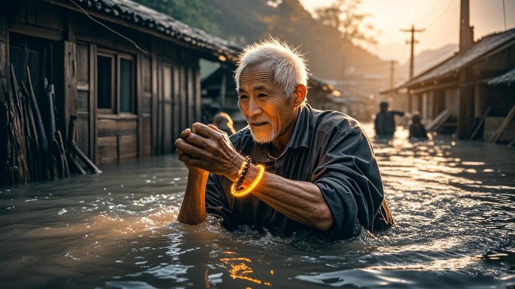 Once, the village was hit by a flood. In a panic, Fusheng accidentally slipped and fell. But at that critical moment, he felt a warm power coming from the bracelet, which supported him to stand up and find a safe place.