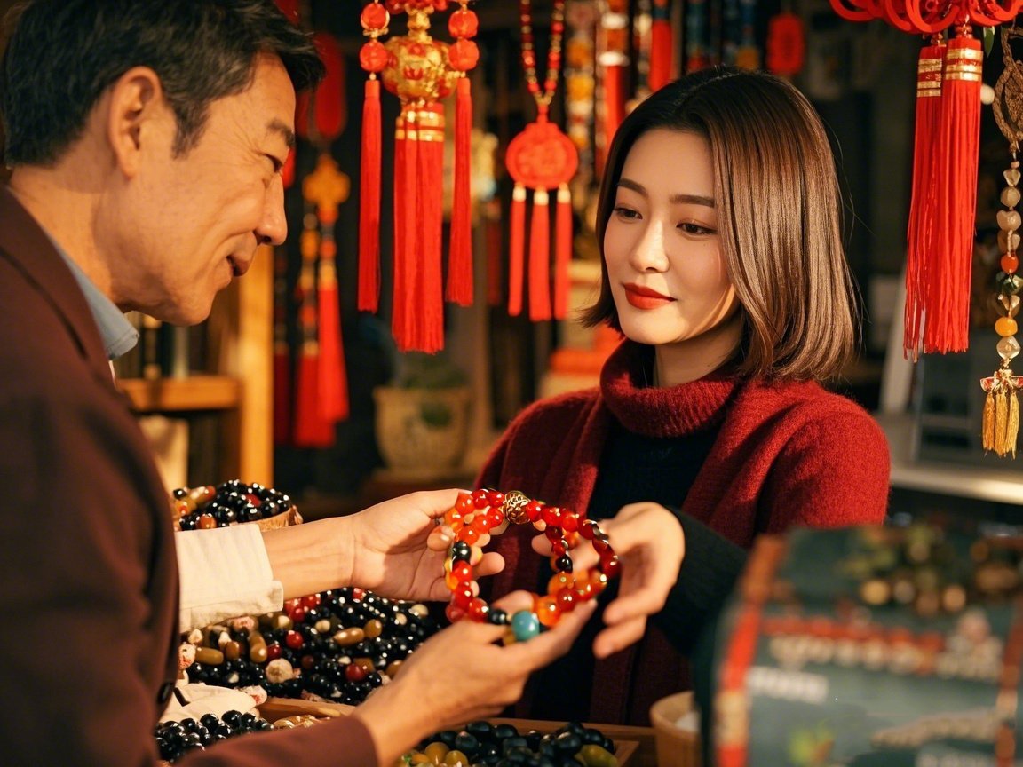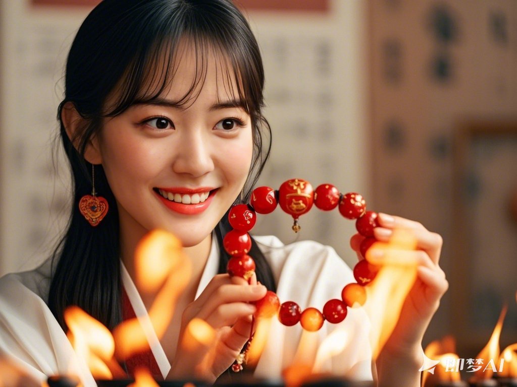The shop owner told her that this bracelet was crafted according to the wonderful meaning of the ancient Five-Element metaphysics and the Heart Sutra of the God of Wealth. It could make up for the deficiency in fire fortune, receive the blessings of the Five-Road God of Wealth, open the door to wealth and good fortune, and dispel the gloom of bad luck. Xiaoyan was touched and bought it.