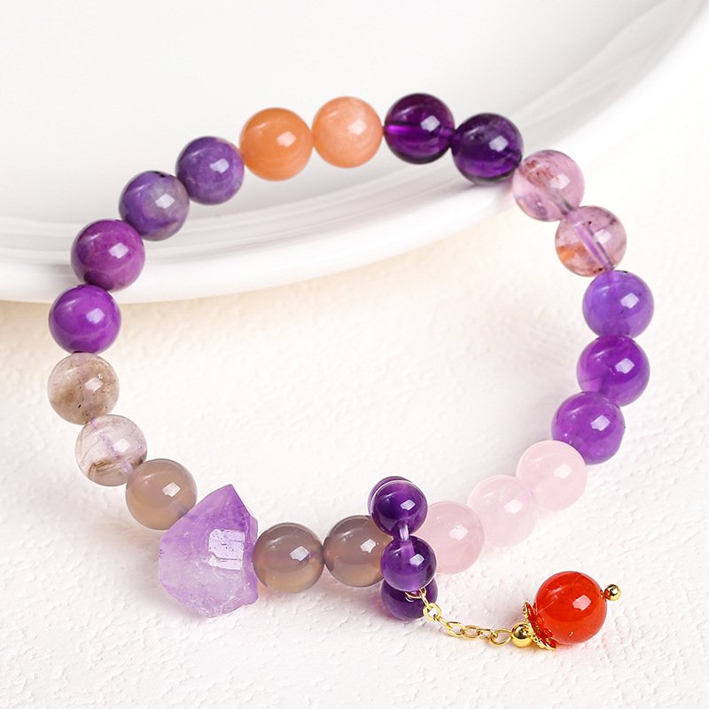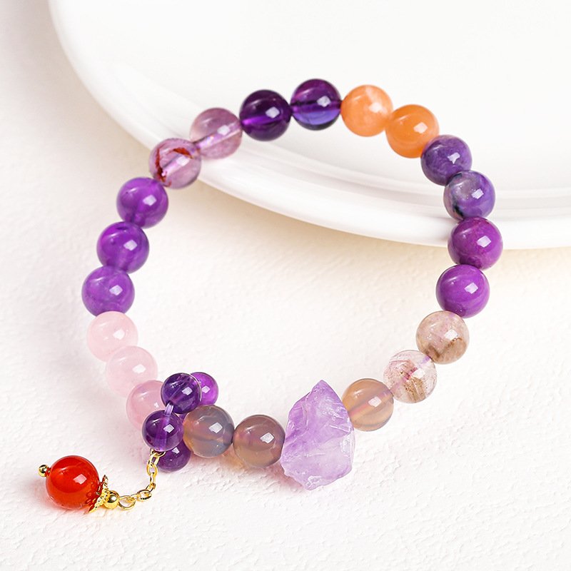 Natural Nine Purple Li Fire Multi-Treasure Crystal Bracelet.