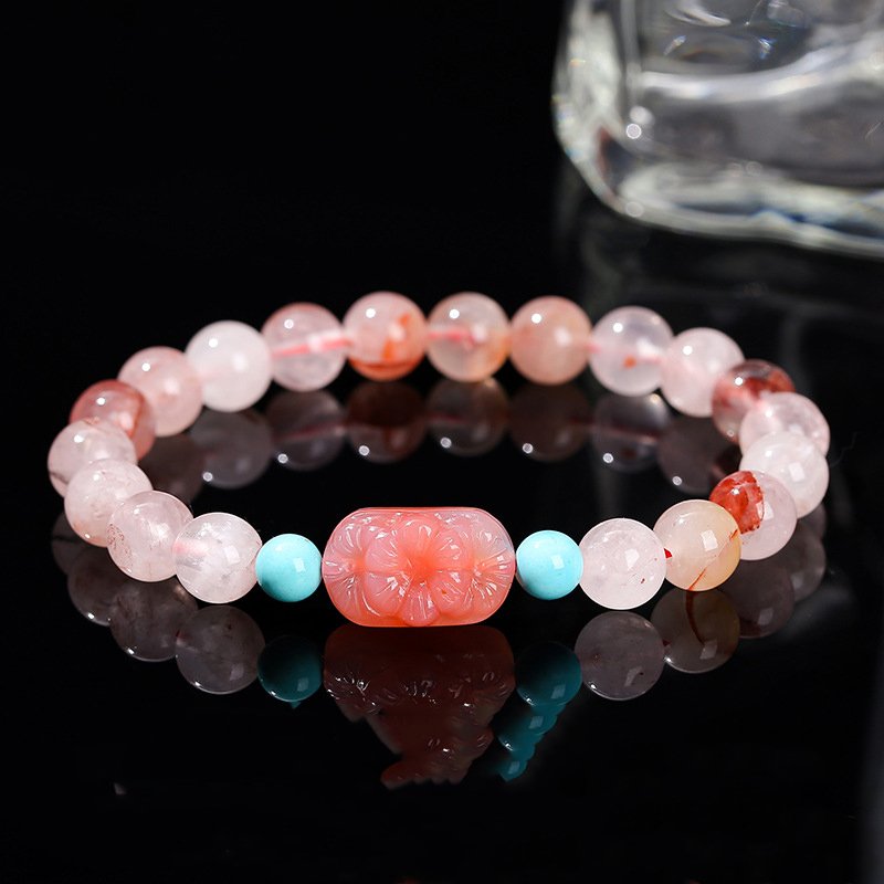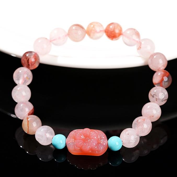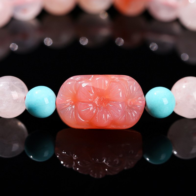 Red flower agate crystal and Yanyuan agate flower plaque bracelet.